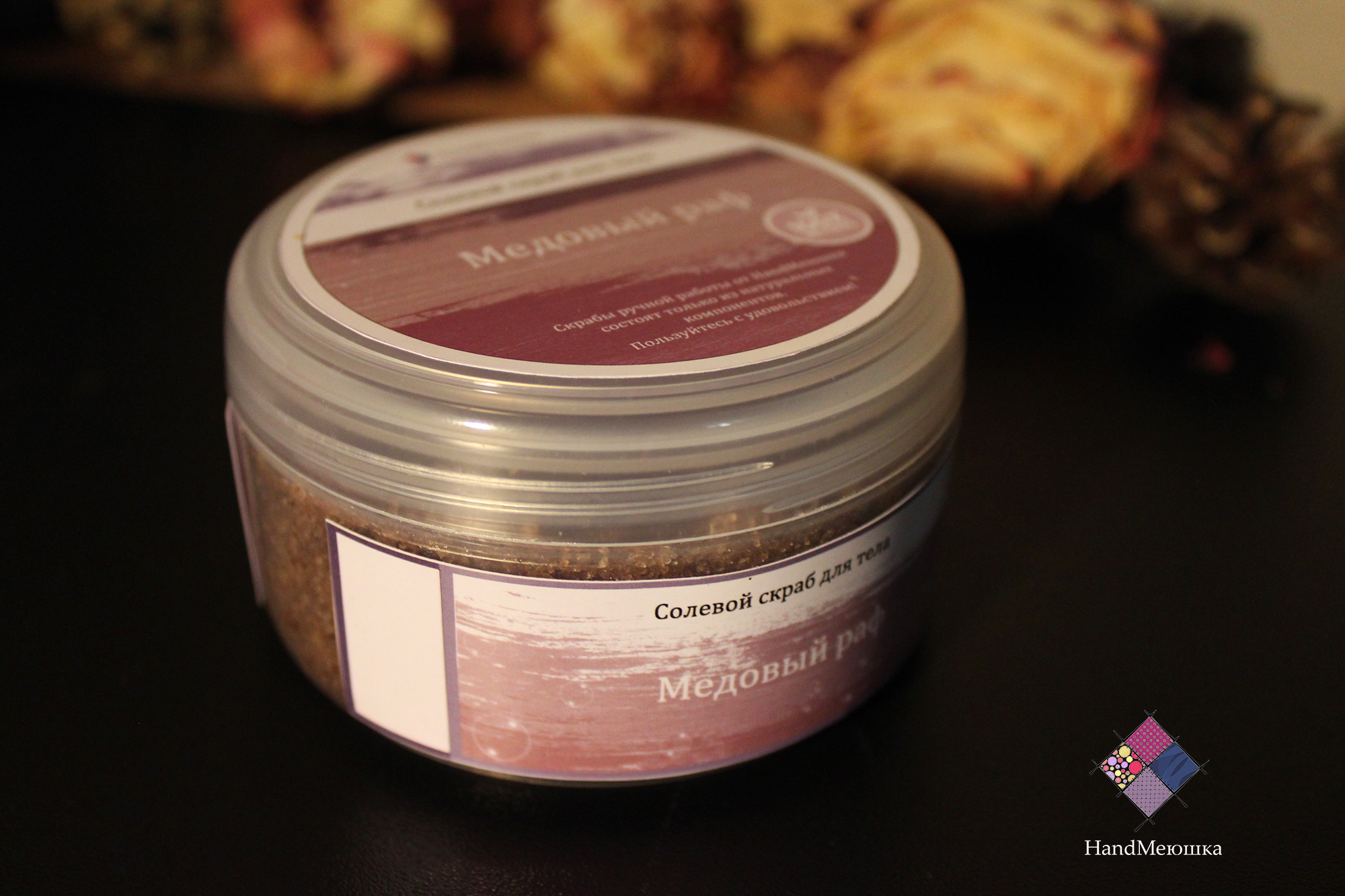 Прекрасный скраб сделает вашу кожу бархатистой, нежной и придаст ей упругости. Пользуйтесь им в сауне. бане, душе или, когда принимаете ванну. Мельчайшие частички скраба очистят вашу кожу ,а мёд и масло оливы моментально увлажнят её. Пользуйтесь с удовольствием!