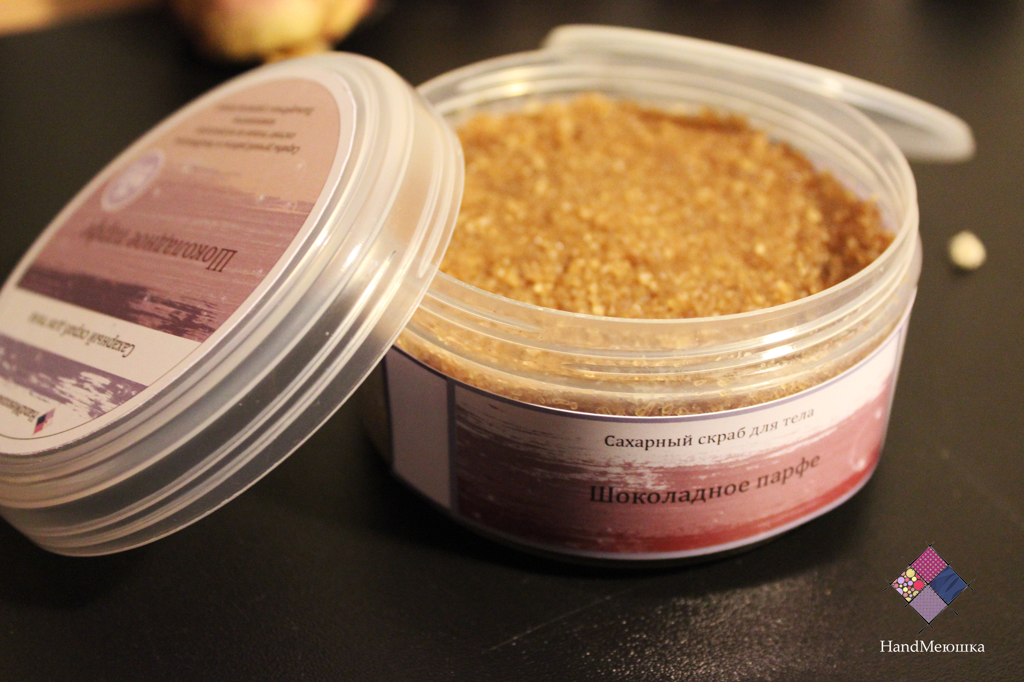 Прекрасный скраб сделает вашу кожу бархатистой, нежной и придаст ей упругости. Пользуйтесь им в сауне. бане, душе или, когда принимаете ванну. В состав данного скраба добавлен шоколад ручной работы, который мы делам сами. Пользуйтесь с удовольствием!