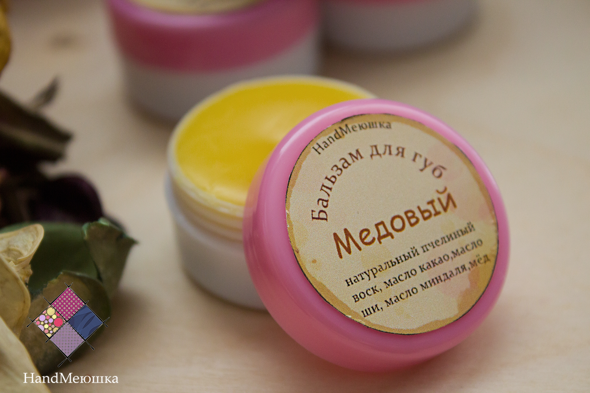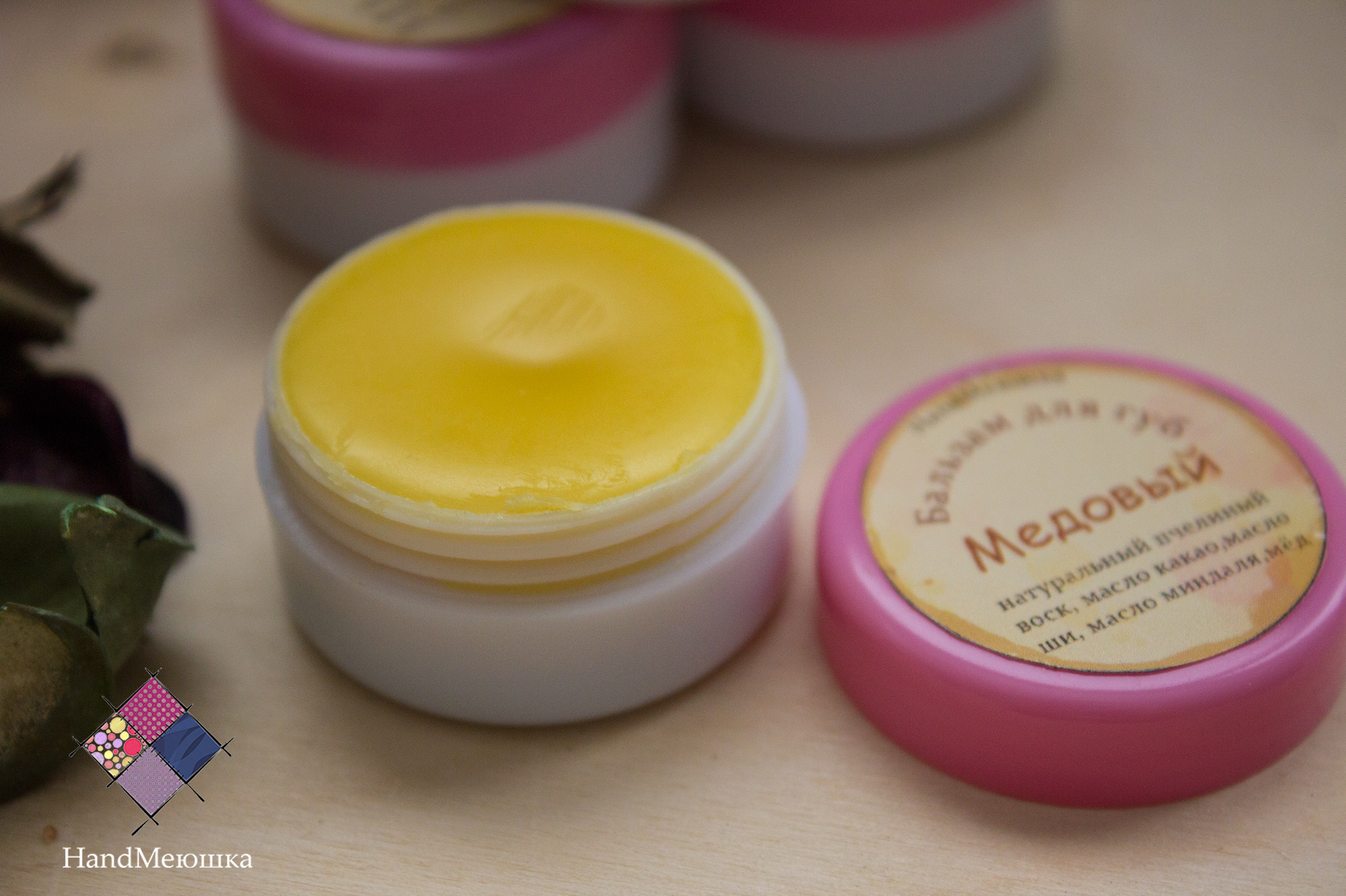 Состав: натуральный пчелинный воск, масло какао, масло миндальное,масло ШИ, мёд, эфирное масло лимона
