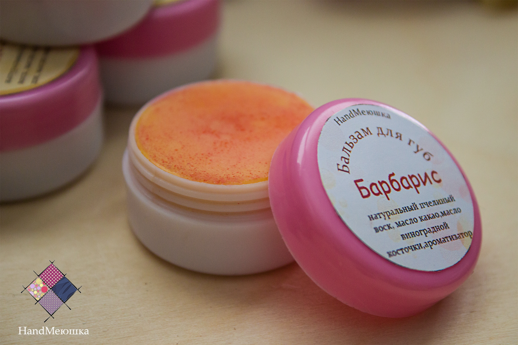 Состав: натуральный пчелинный воск, масло какао, масло жожоба,масло винградной косточки,эфирное масло барбариса, краситель