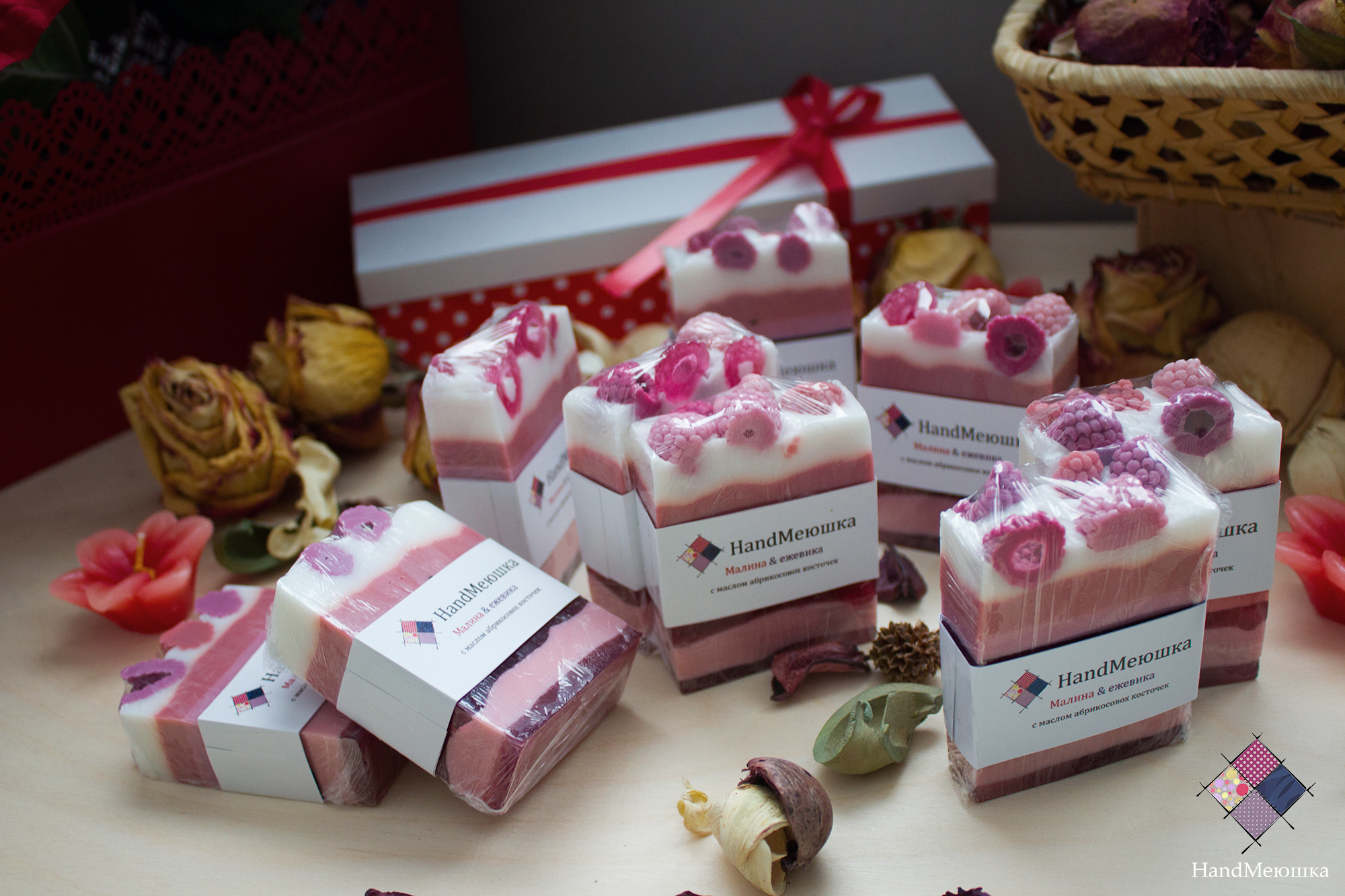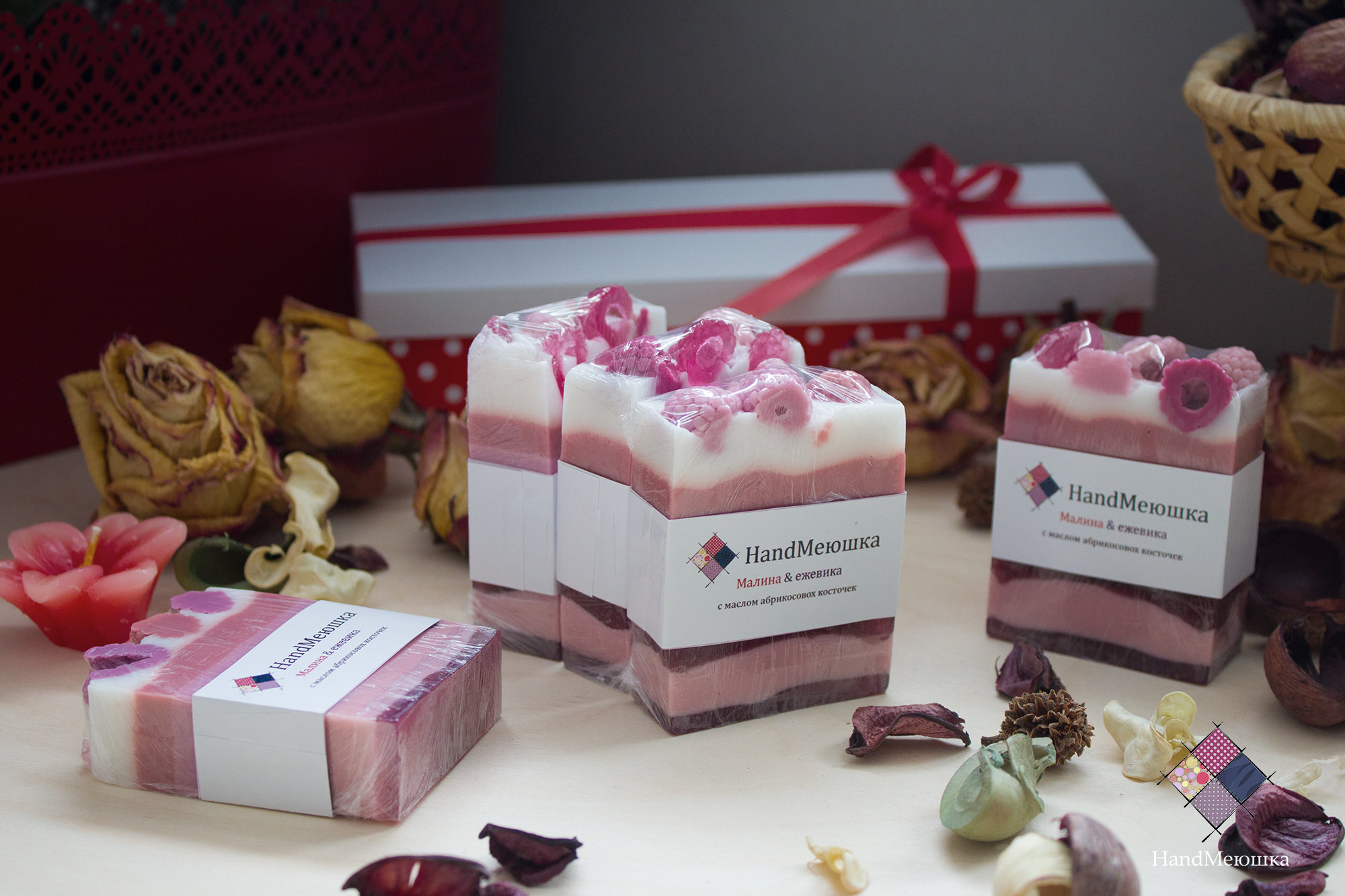 натуральная мыльная основа, мыльные ягодки, масло абрикосовой косточки, ароматизатор, краситель