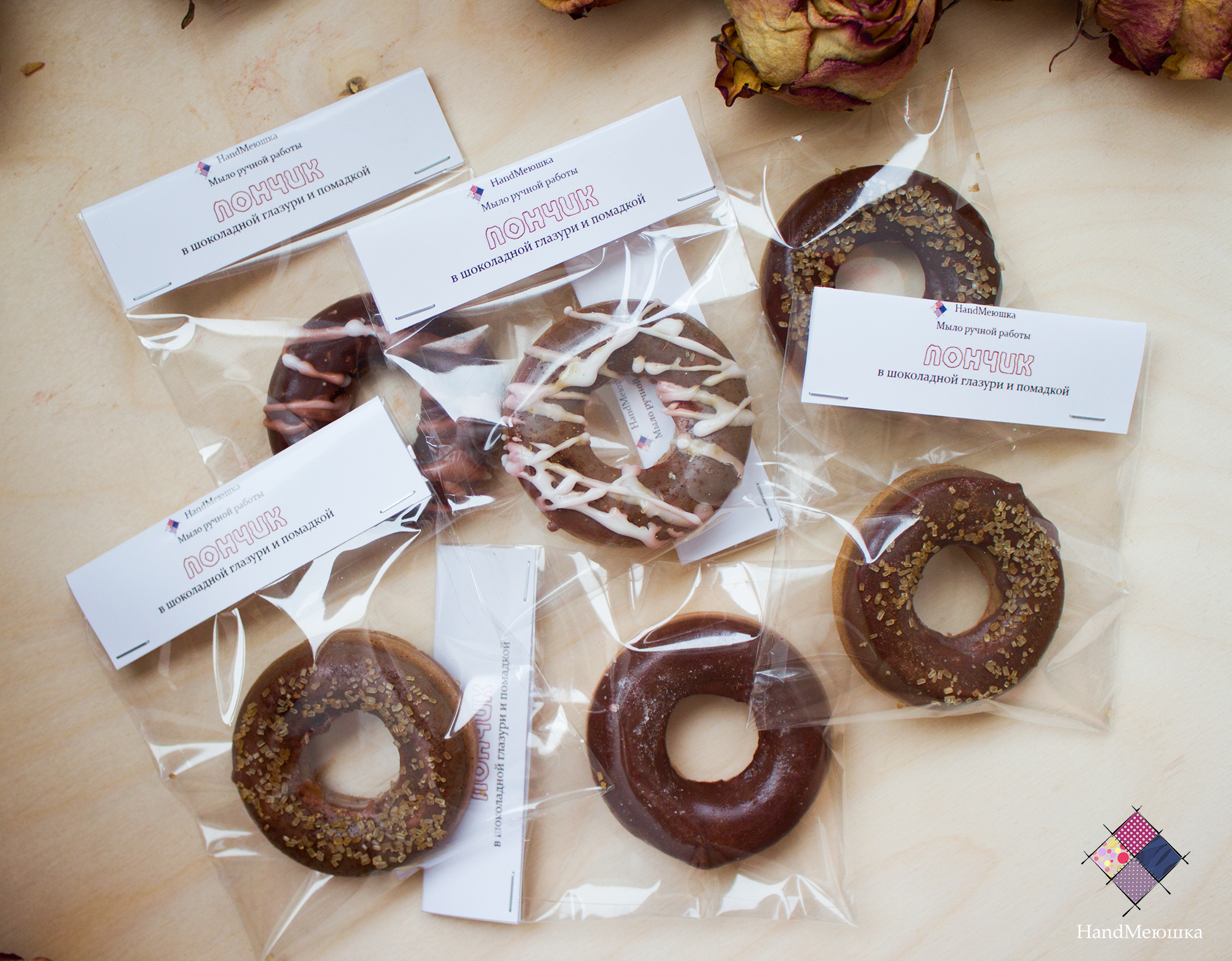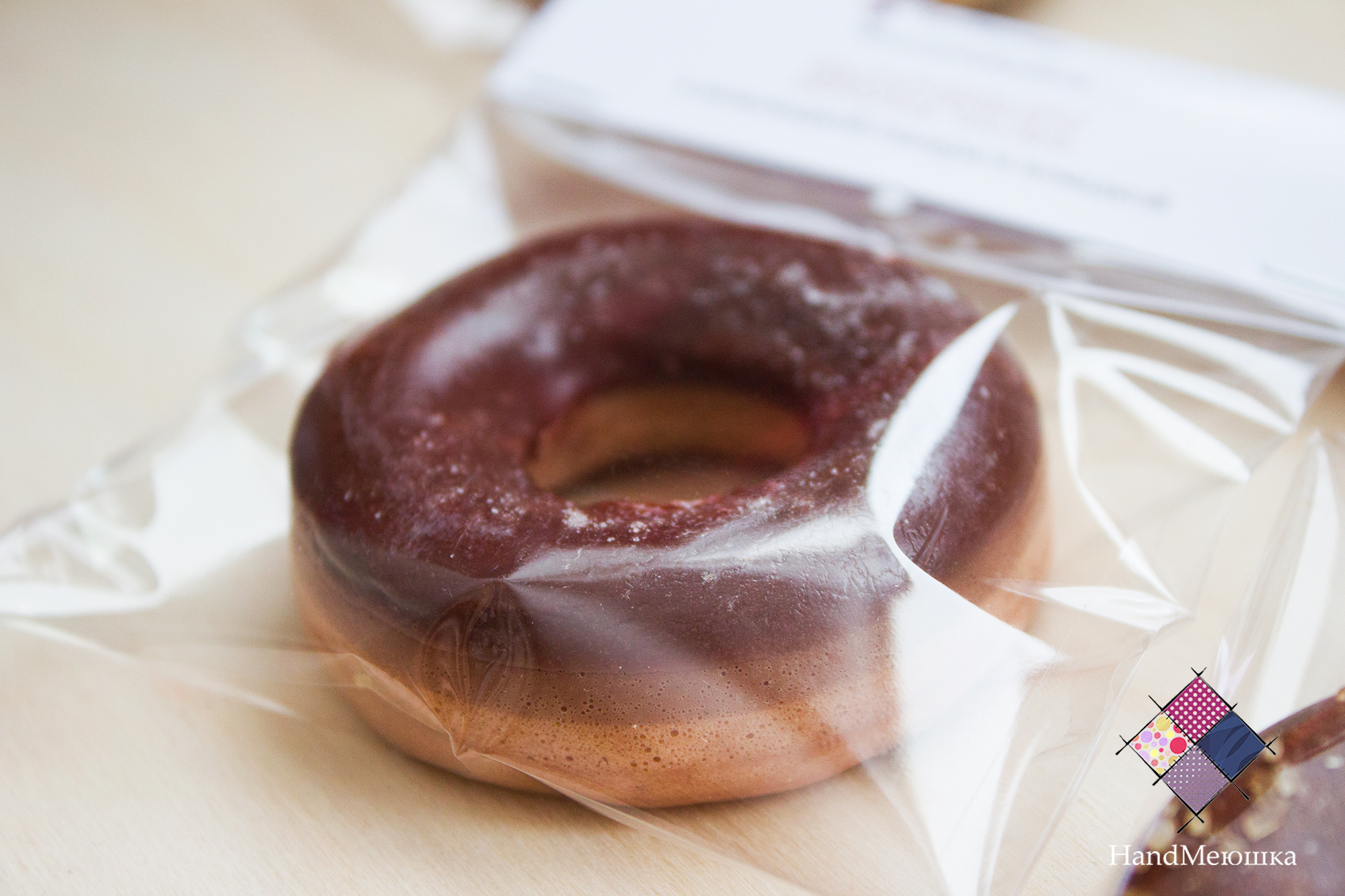 Удивительное мыло ручной работы в виде пончика. Выглядит как настоящий. Очень аппетитно и ароматно пахнет и выглядит! Несмотря на свою причудливую форму, оно также прекрасно мылится, как и всё остальное мыло. Идеально в качестве креативного подарка на любой праздник.