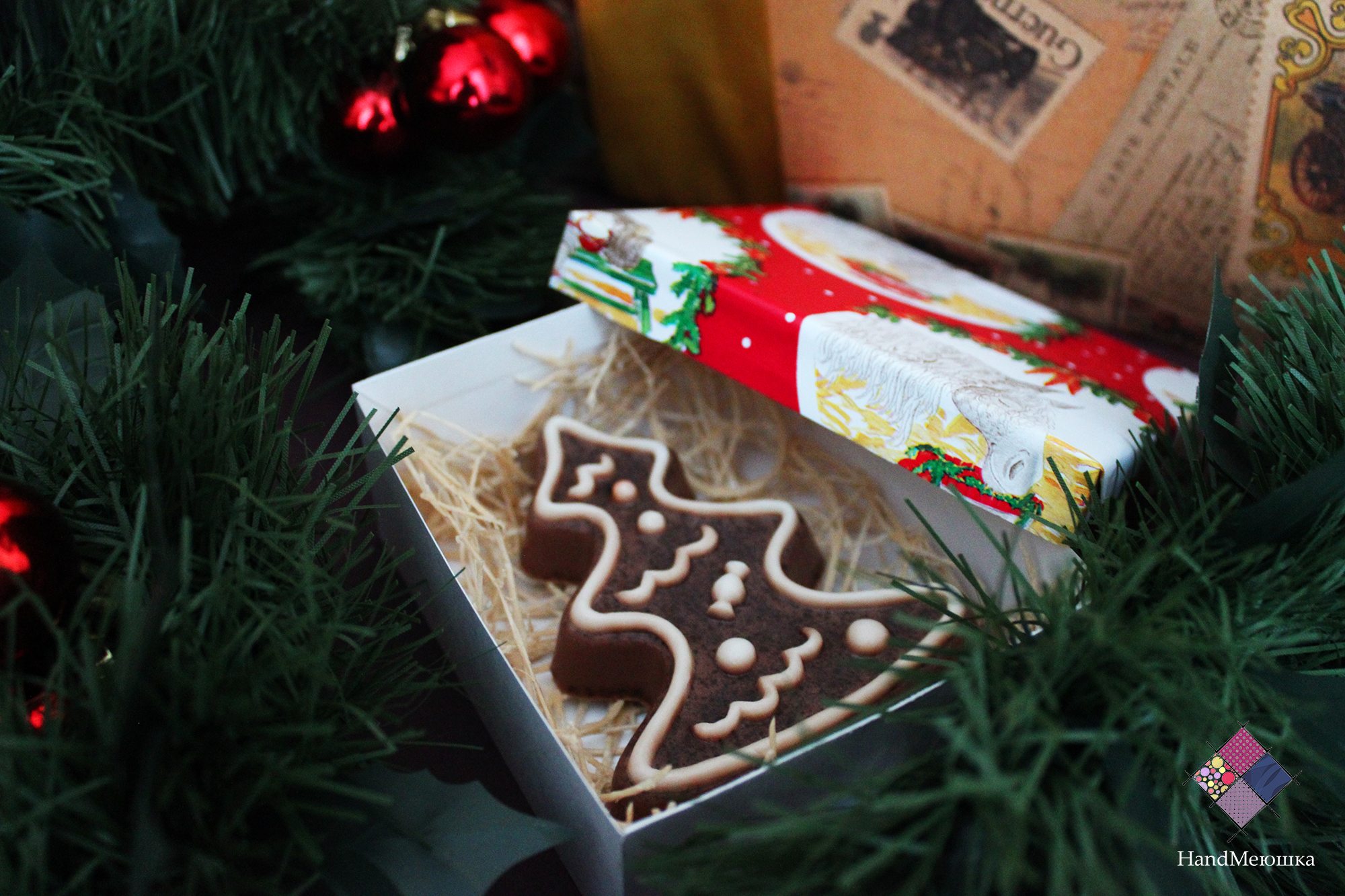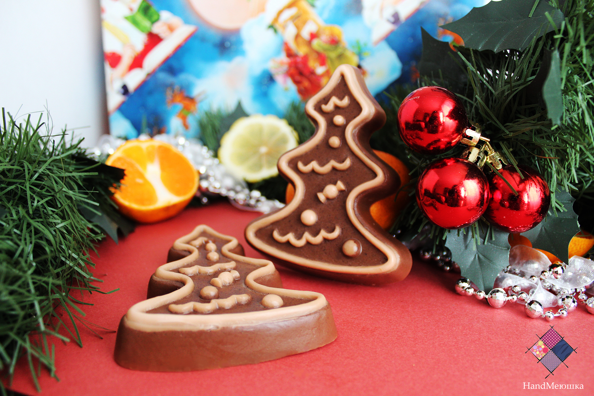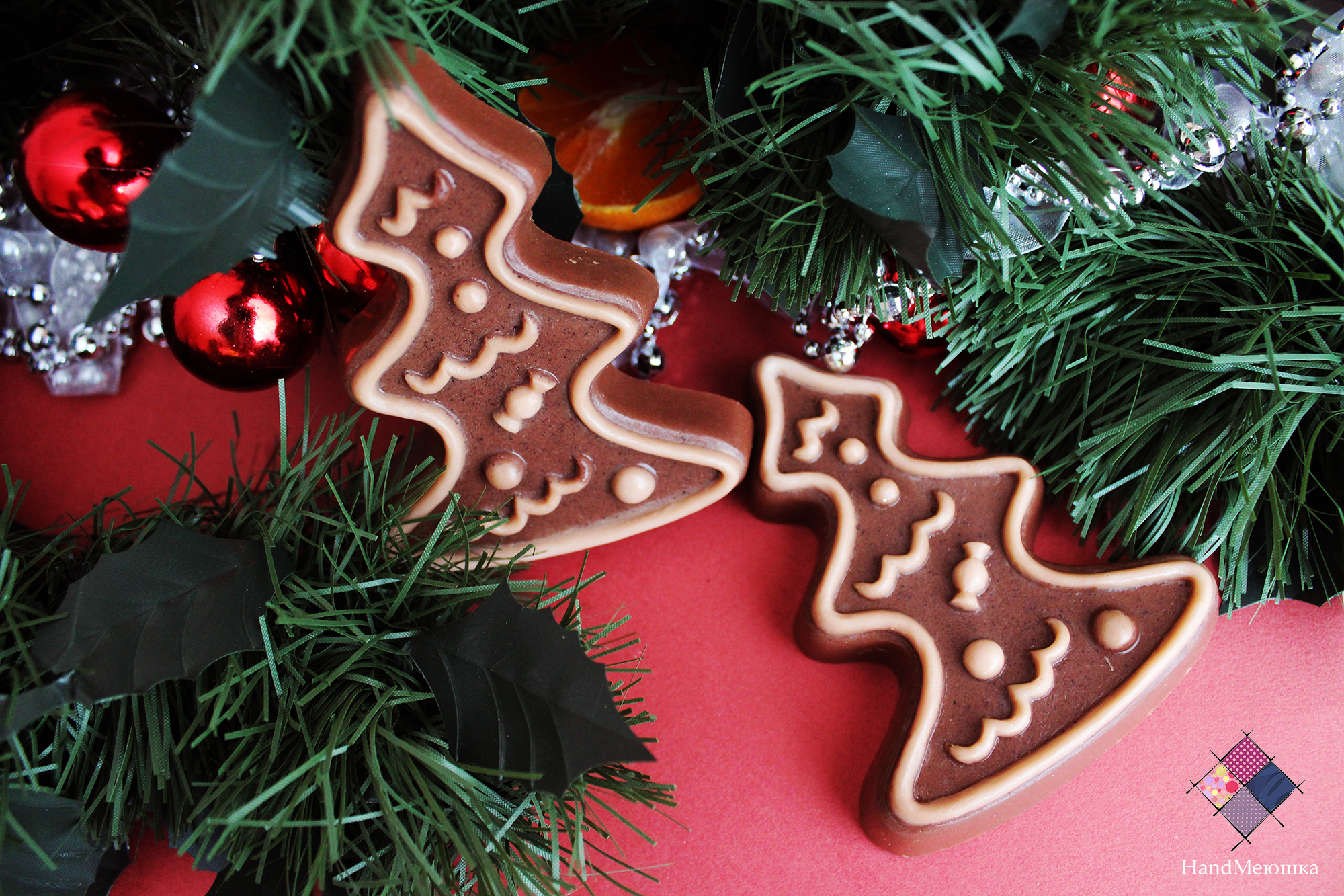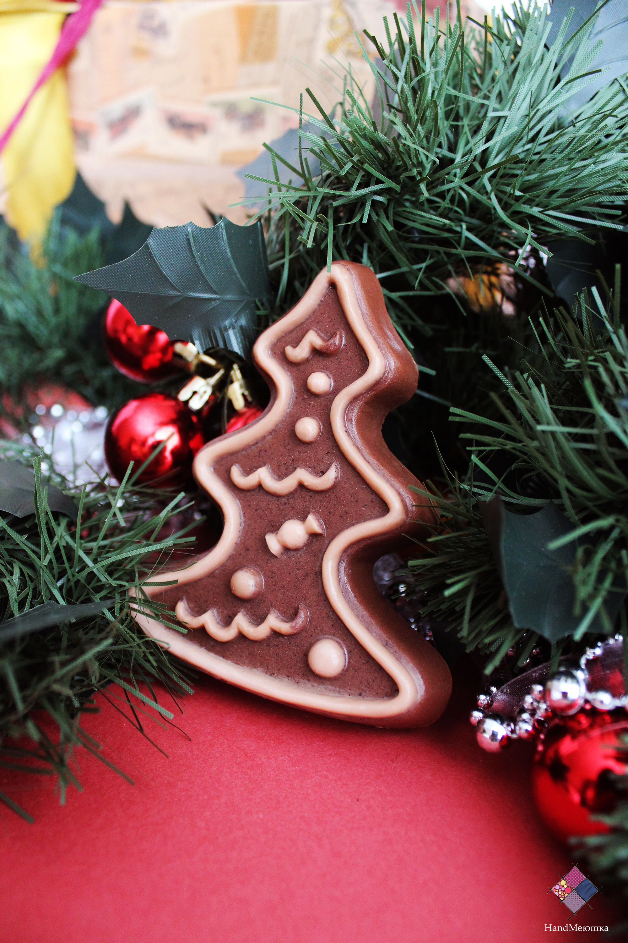 Прекрасное мыло в виде ёлочки станет отличным подарком на Новый год . Запах корицы и апельсина , подчеркнет новогоднее настроение. Можно использовать как декоративное , так и косметическое мыло. Для создания данного мыла был использован настоящий шоколад , который очень полезен для кожи.