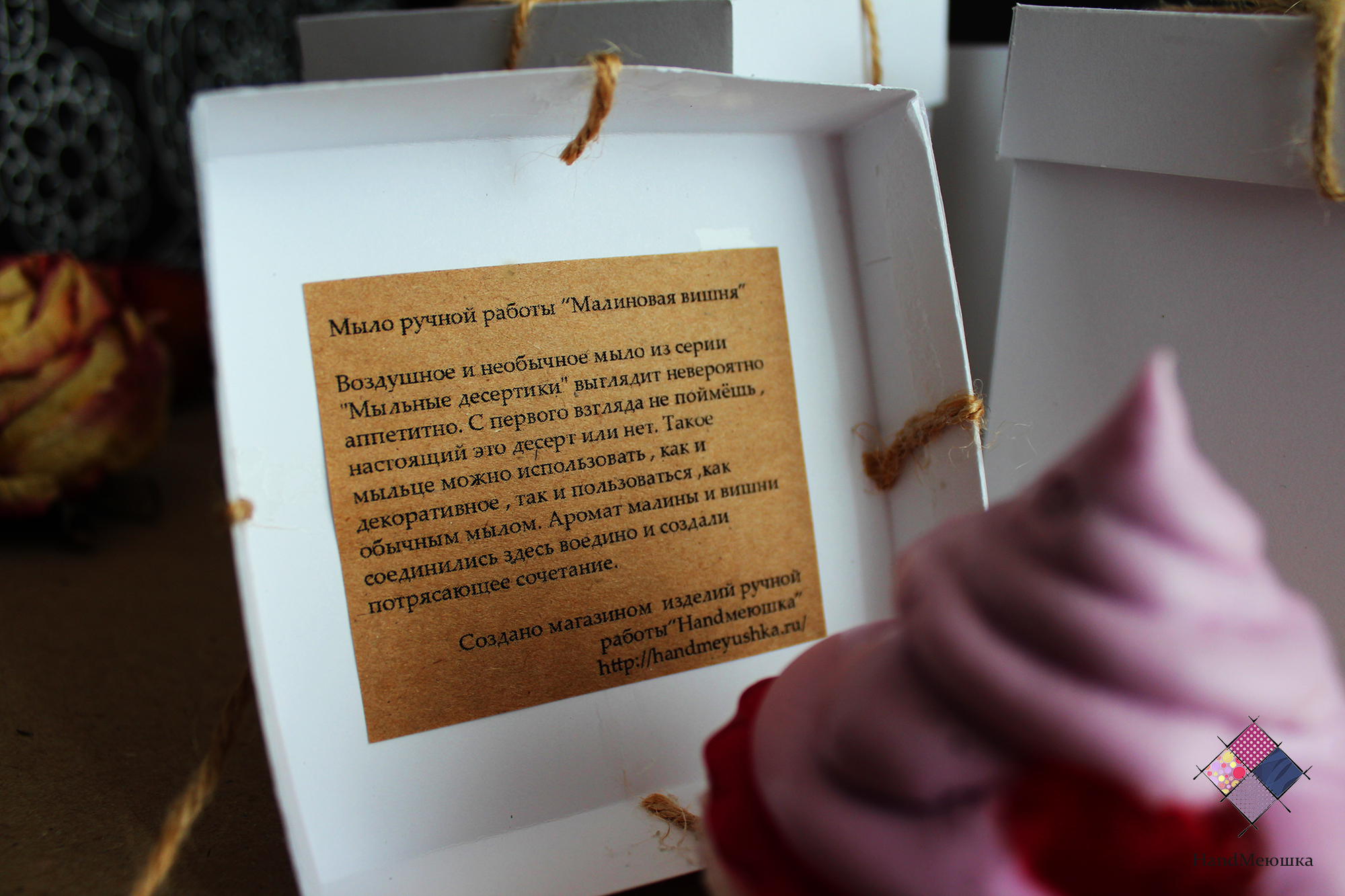 Воздушное и необычное Мыло из серии "Мыльные десертики" выглядит невероятно аппетитно. С первого взгляда не поймёшь , настоящий это десерт или нет. Такое мыльце можно использовать , как и декоративное , так и пользоваться ,как обычным мылом. Аромат малины и вишни соединились здесь воедино и создали потрясающее сочетание.Такое мыло станет прекрасным подарком , поверьте он не оставит никого равнодушным! Мыльные десертики упаковываются в коробочку (коробочка бесплатно)