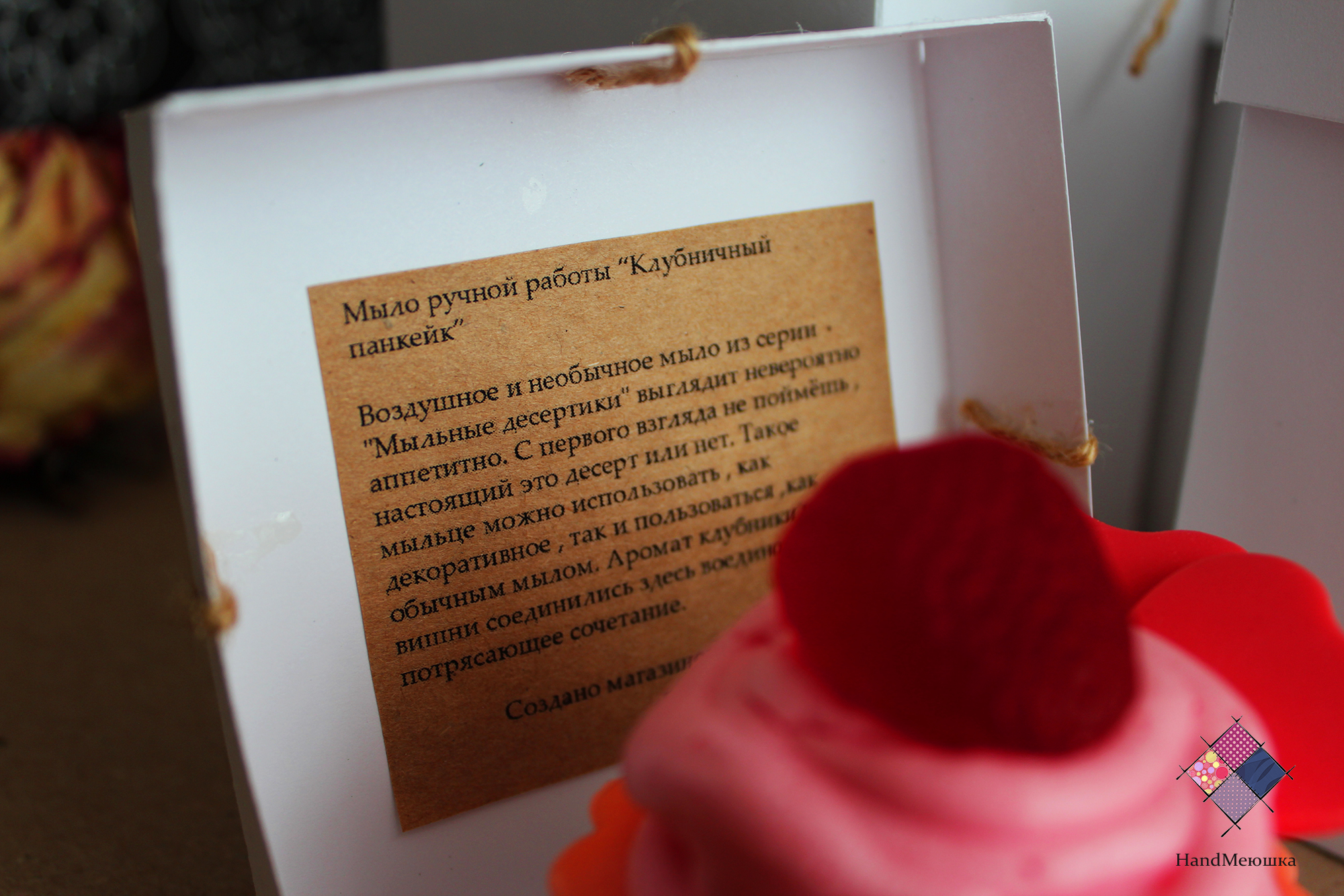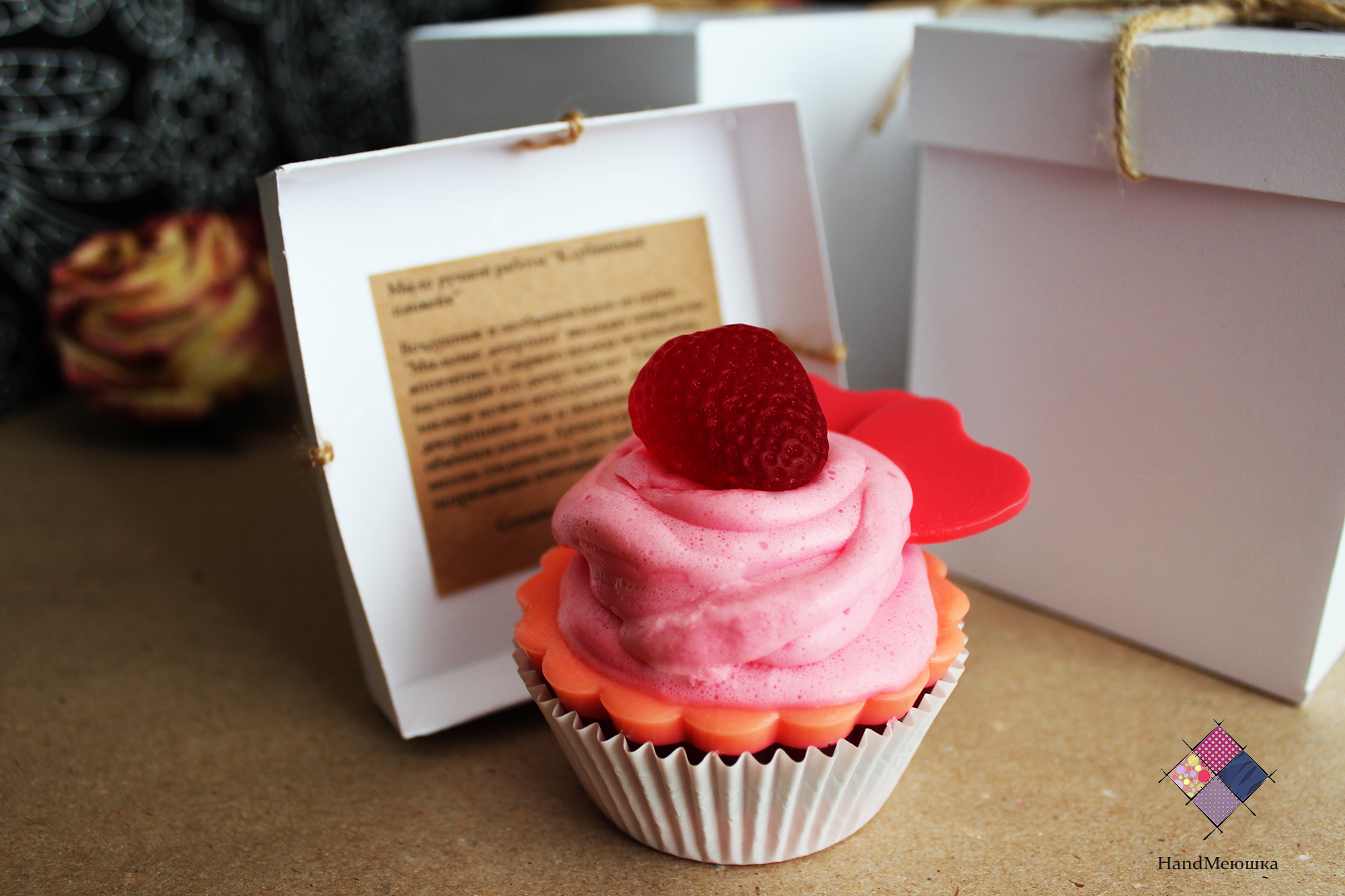 Воздушное и необычное Мыло из серии "Мыльные десертики" выглядит невероятно аппетитно. С первого взгляда не поймёшь , настоящий это десерт или нет. Такое мыльце можно использовать , как декоративное , так и пользоваться ,как обычным мылом. Аромат клубники и вишни соединились здесь воедино и создали потрясающее сочетание.Такое мыло станет прекрасным подарком , поверьте он не оставит никого равнодушным! Мыльные десертики упаковываются в коробочку (коробочка бесплатно)